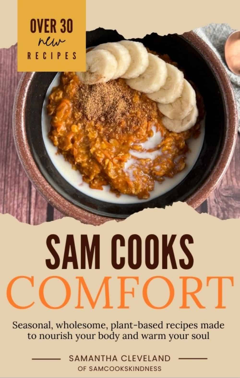 Sam Cooks Comfort is your cozy companion for the chillier months! Inside, you’ll find 30+ brand new whole food plant-based recipes made to fill your kitchen with warmth and fuel your body. From hearty soups and creamy casseroles to sweet treats that feel like a hug in a bowl, every recipe is oil-free, nourishing, and 100% vegan.